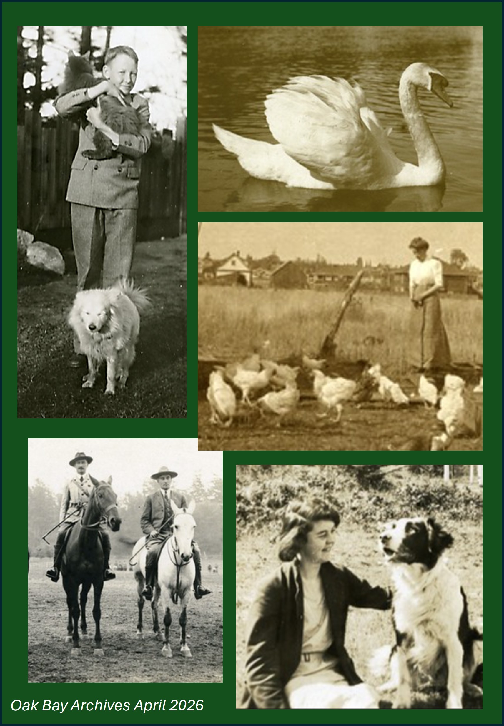 Day 7 Some #ArchiveAnimals - a swan, chickens, dogs, a cat, and horses, from the Taylor, Hinkins-Unwin, Burrell, and Pattinson albums. More about: browse Oak Bay Archives photos at https://www.flickr.com/people/oakbayarchives/ #Archive30
