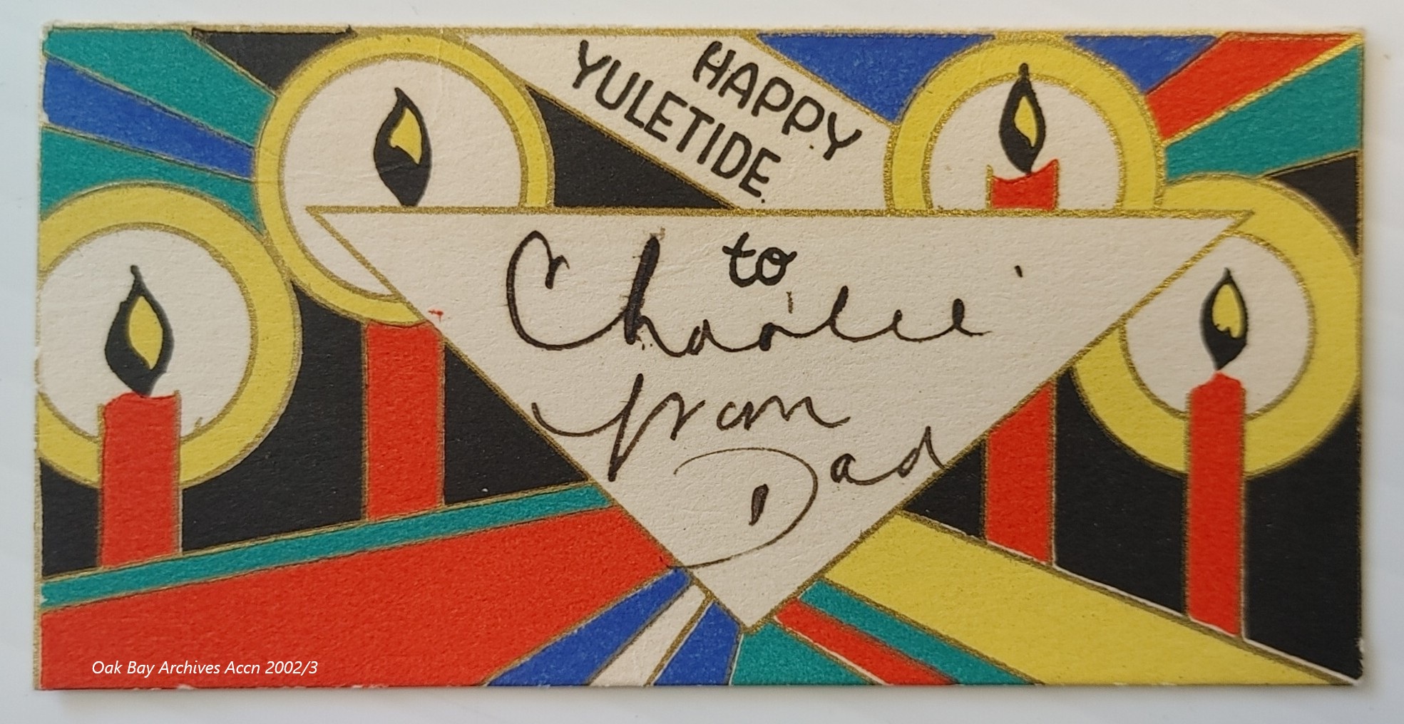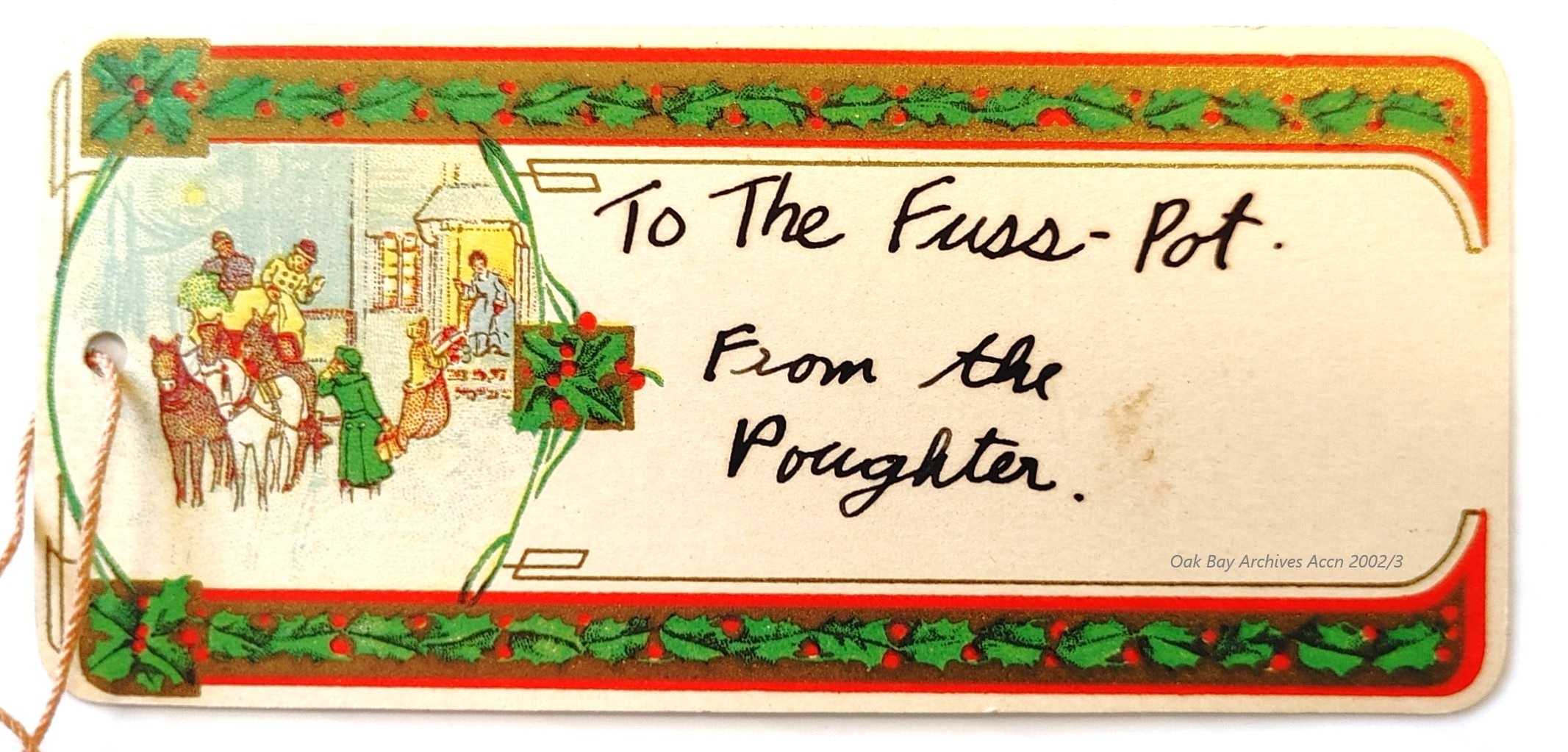 Day 18 For #ArchivePresent (and also #SomethingSmall), two items of ephemera, decorative Christmas present tags in contrasting styles, one harking back to traditional English Victorian imagery, and the other more modern/Art Deco-esque. (OBA Accn 2002/3) #Archive30