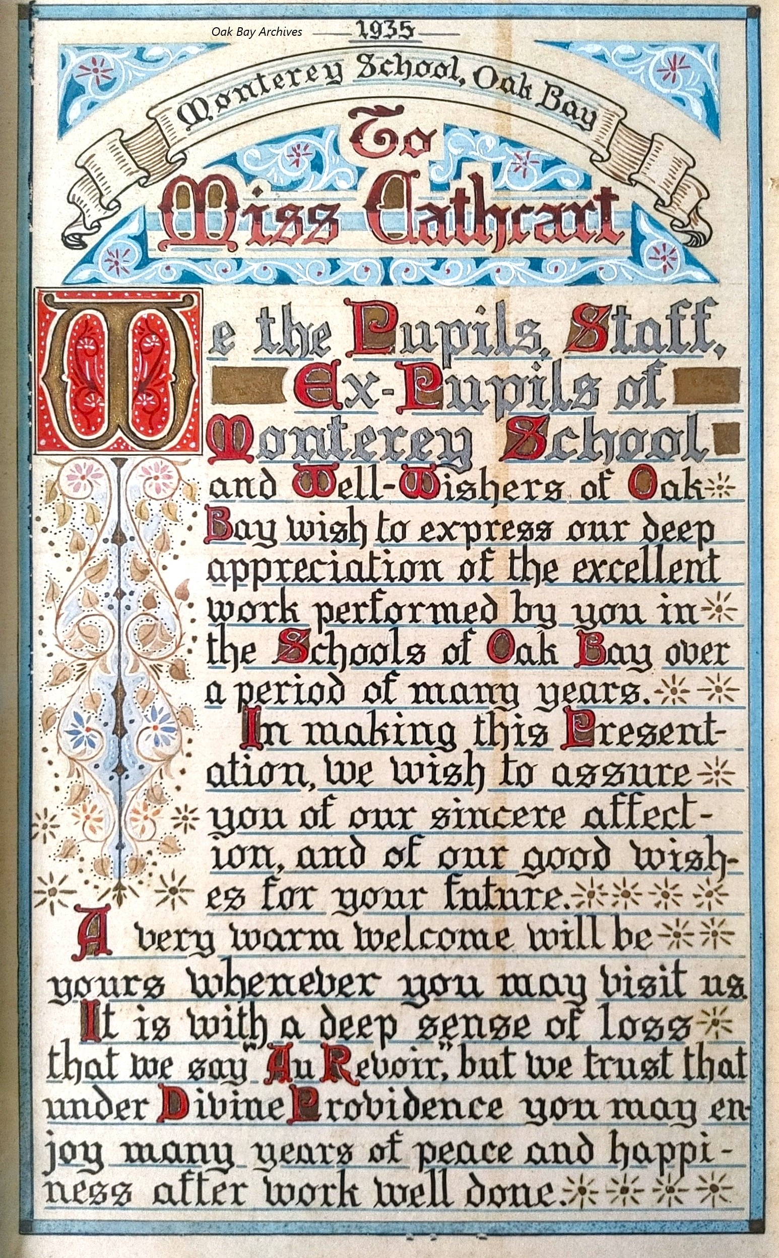 Day 13 There are already several examples of #ColourfulArchives above, but for the 13th we feature a rather special presentation to Miss Isabella Cathcart (1872-1950) from the "pupils, staff, and ex-pupils of Monterey School and well-wishers of Oak Bay" on the occasion of her retirement in 1935. Her obituary appeared in the Victoria Daily Times on 9 February 1950: https://archive.org/details/victoriadailytimes1950-02-09/page/n15/mode/2up