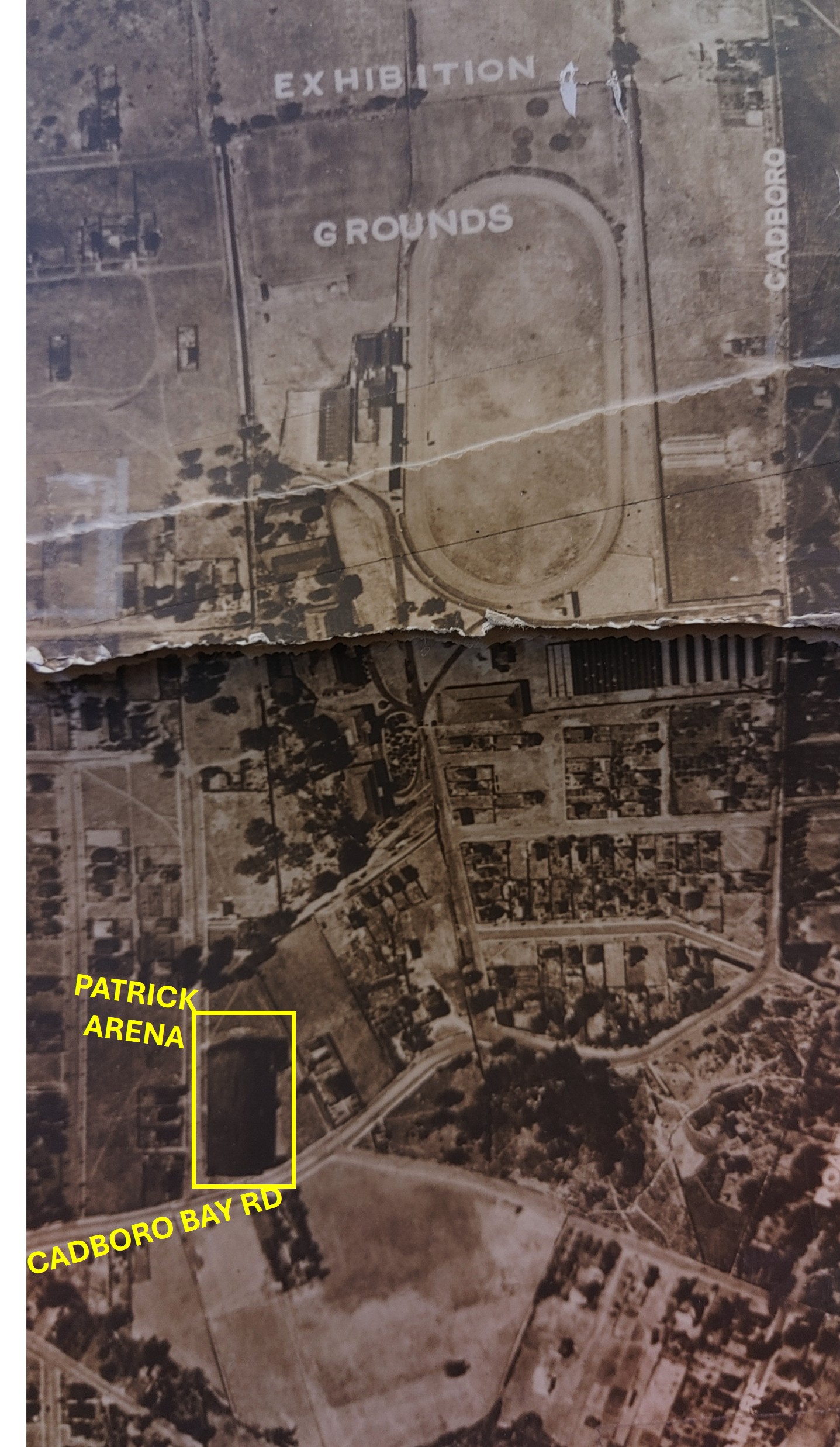 Day 12 #SomethingBig in the archives that shows a lot of small details is this 43x60" mounted print of a 1929 Royal Canadian Air Force aerial photo of "Victoria and Vicinity", part of the Topographical Survey of Canada. This detail shows two major features of north Oak Bay that no longer exist: The Patrick Arena (photographed in its last year of existence) near bottom left, near the junction of Cadboro Bay and Cranmore Rd; and further north, the race track and exhibition buildings at the Willows Fairgrounds. These photos remain in Crown copyright in Canada. Yellow annotations added for this post. #Archive30