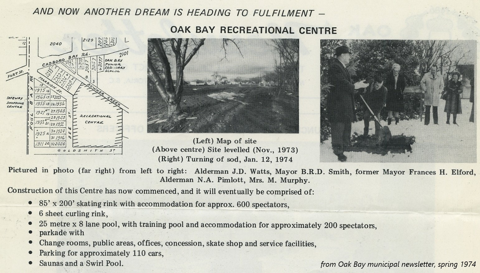 Image: "And now another dream is heading to fulfillment": early summary of Rec Centre building project from Oak Bay municipal newsletter, March 1974. Oak Bay Archives. Online at https://www.flickr.com/photos/oakbayarchives/54540...