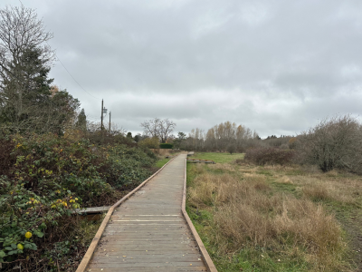 During the winter months, the walking trails in Uplands Park often become muddy and difficult to navigate, making it a challenge to stay on the designated paths. These conditions can limit accessibility for individuals and put rare plants at risk of damage.
